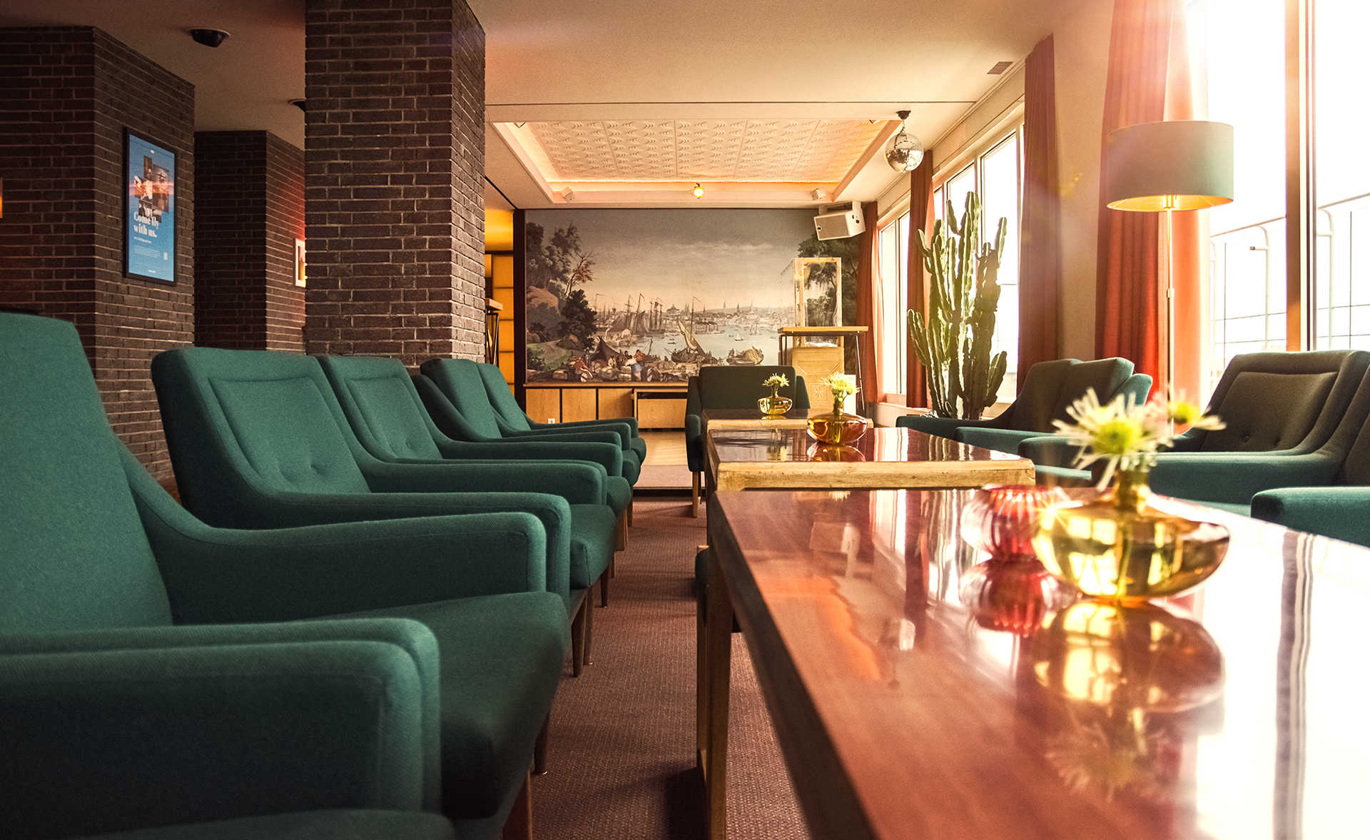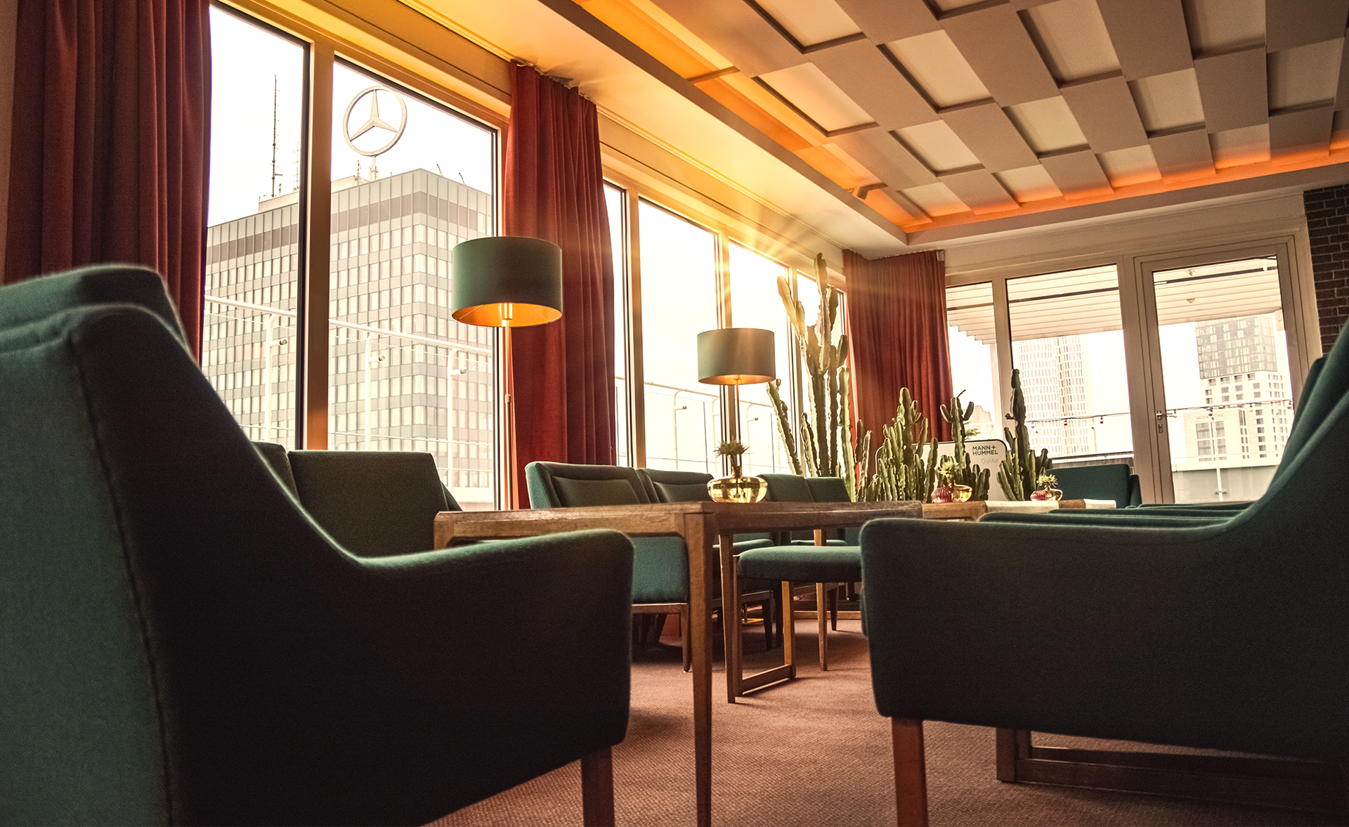 A visual study of the retro elegance inside Berlin’s iconic PANAM Lounge. Warm light and mid-century design evoke timeless sophistication.