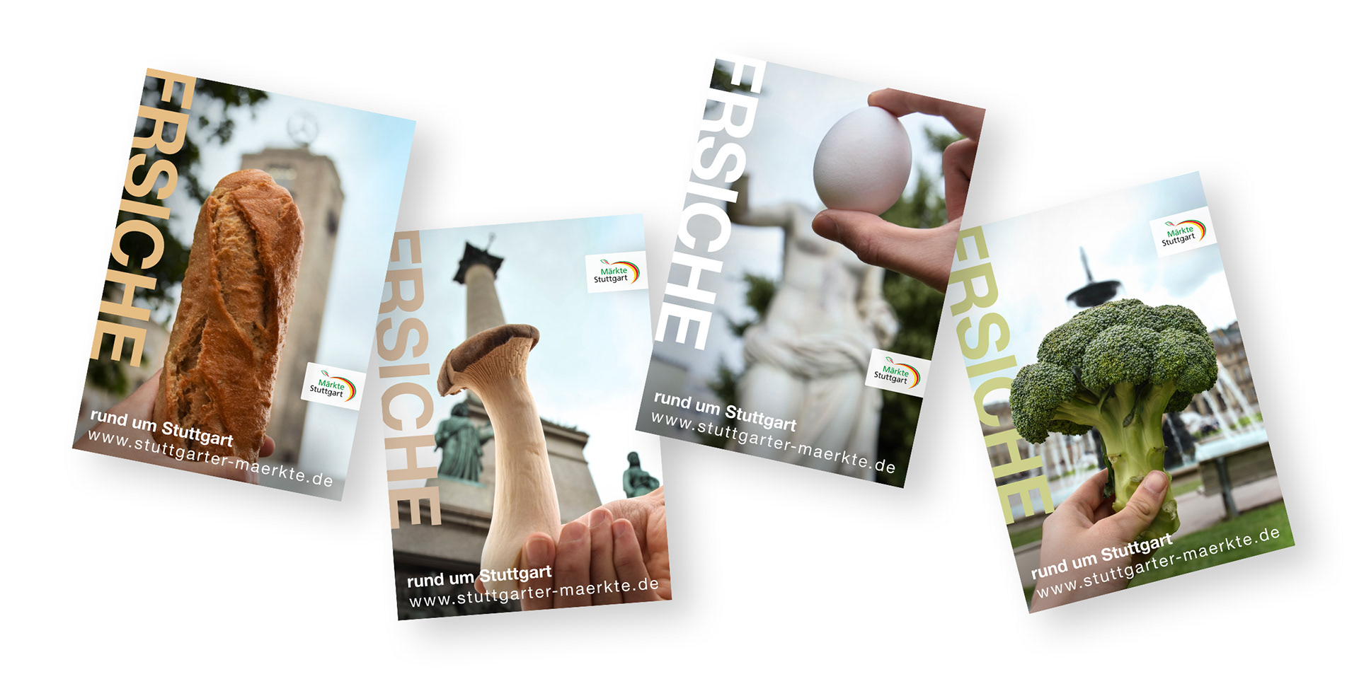 A photography-driven campaign for Stuttgart’s weekly markets. Fresh produce shaped like city landmarks visually connects local food and urban culture.